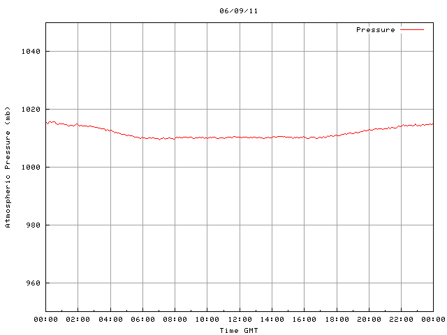 The PML meteorological station, situated on the south-west corner of the building roof, consists of a Hygroclip S3 temperature and humidity sensor housed in a radiation shield, a Mierij Meteo solid state wind sensor (MMW-005), a Chelsea instruments half-hemisphere PAR sensor, a Li-Cor pyranometer (LI-200SZ) and an Omni Instruments 6" tipping bucket raingauge (RG200). The data are logged every 5 minutes using a Pace Scientific XR5 data logger. The real-time rainfall data is likely in error - the correct values will be displayed after a time lag of approximately 24 hours. The meteorological station is sheltered from winds in the north-east and underestimates winds from this quarter. To use these data please contact Dr Tim Smyth.