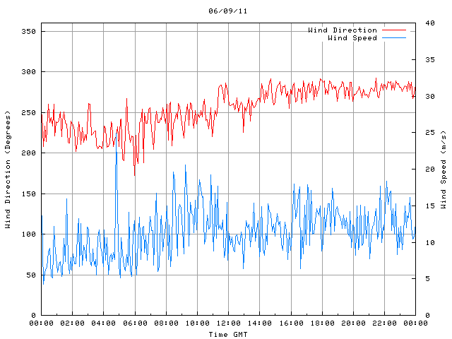 - Max Wind Speed: 25.0 ms-1 Time: 4:47:45 GMT