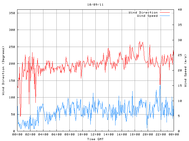- Max Wind Speed: 15.3 ms-1 Time: 21:52:45 GMT