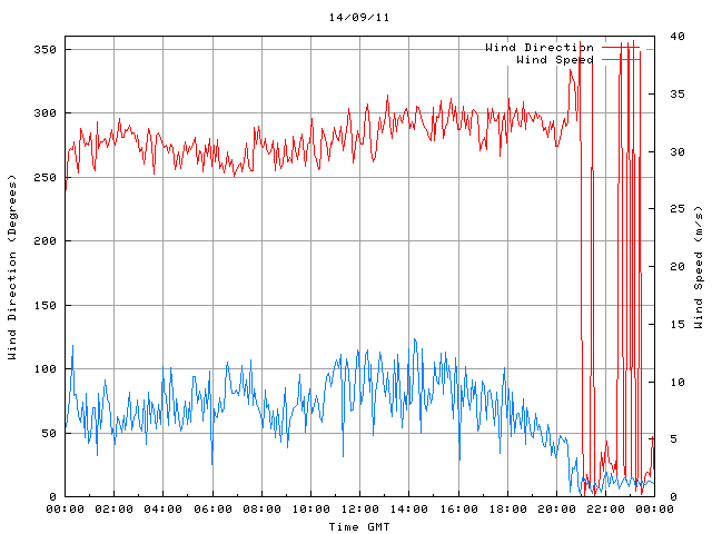 - Max Wind Speed: 13.7 ms-1 Time: 14:12:45 GMT