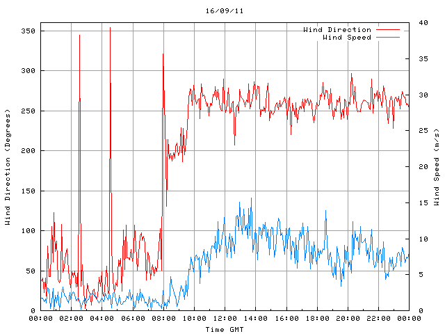 - Max Wind Speed: 15.7 ms-1 Time: 13:42:45 GMT