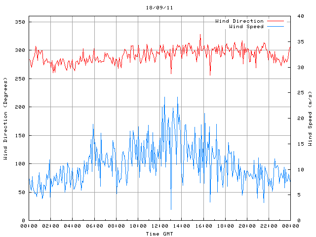 - Max Wind Speed: 24.2 ms-1 Time: 12:27:45 GMT