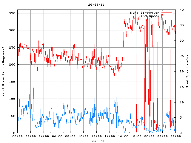 - Max Wind Speed: 14.7 ms-1 Time: 2:27:45 GMT