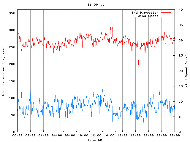 - Max Wind Speed: 14.4 ms-1 Time: 13:02:45 GMT