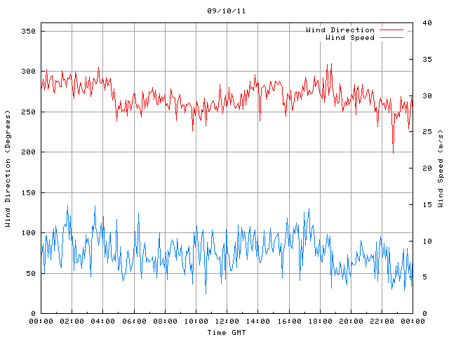 - Max Wind Speed: 14.8 ms-1 Time: 1:42:45 GMT