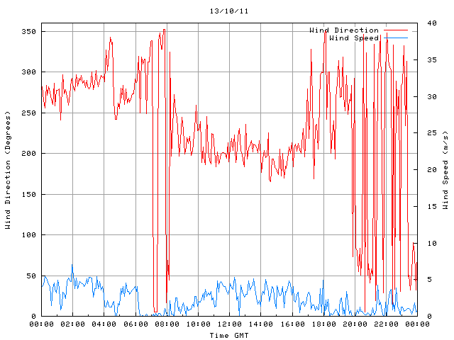 - Max Wind Speed: 7.1 ms-1 Time: 1:57:45 GMT