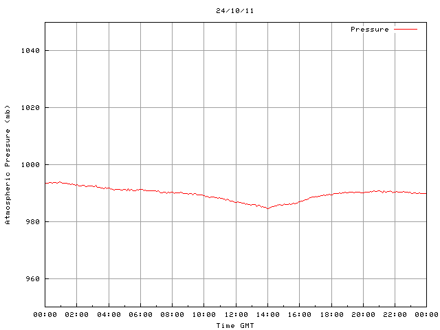 The PML meteorological station, situated on the south-west corner of the building roof, consists of a Hygroclip S3 temperature and humidity sensor housed in a radiation shield, a Mierij Meteo solid state wind sensor (MMW-005), a Chelsea instruments half-hemisphere PAR sensor, a Li-Cor pyranometer (LI-200SZ) and an Omni Instruments 6" tipping bucket raingauge (RG200). The data are logged every 5 minutes using a Pace Scientific XR5 data logger. The real-time rainfall data is likely in error - the correct values will be displayed after a time lag of approximately 24 hours. The meteorological station is sheltered from winds in the north-east and underestimates winds from this quarter. To use these data please contact Dr Tim Smyth.