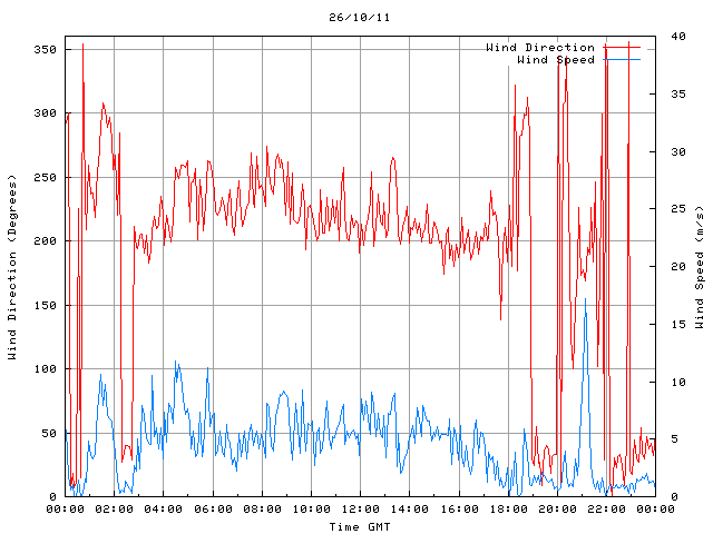 - Max Wind Speed: 17.2 ms-1 Time: 21:07:45 GMT