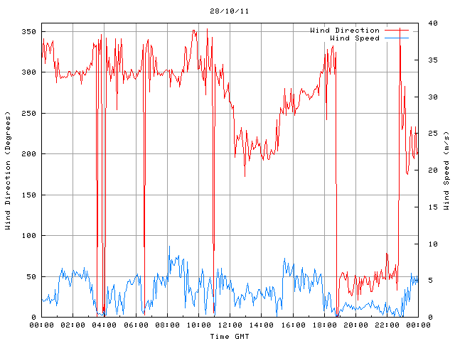 - Max Wind Speed: 9.7 ms-1 Time: 8:07:45 GMT