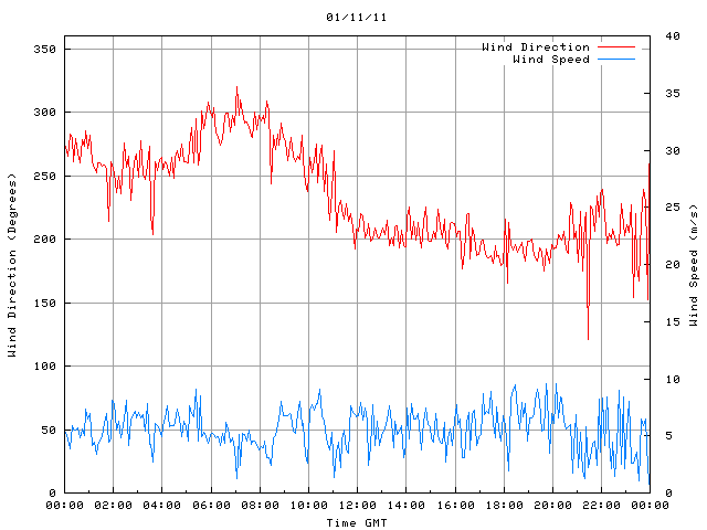 - Max Wind Speed: 9.6 ms-1 Time: 19:42:45 GMT