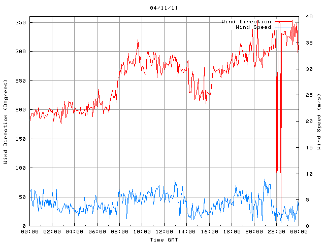 - Max Wind Speed: 9.0 ms-1 Time: 20:57:45 GMT