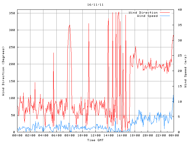 - Max Wind Speed: 12.1 ms-1 Time: 23:52:45 GMT
