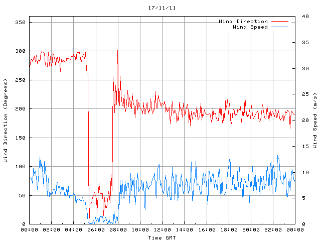 - Max Wind Speed: 13.2 ms-1 Time: 22:22:45 GMT
