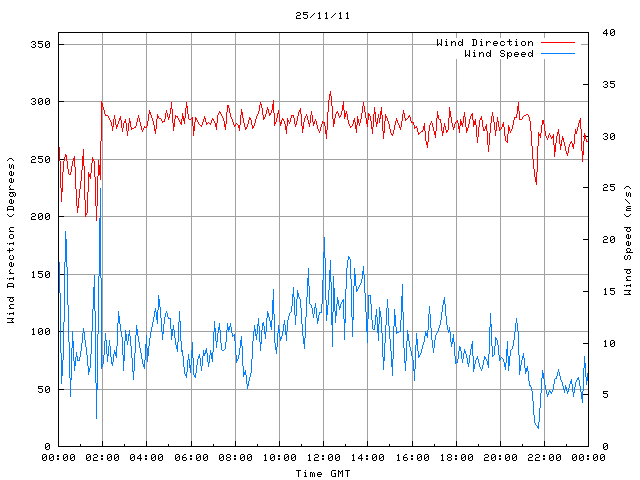 - Max Wind Speed: 25.0 ms-1 Time: 1:52:45 GMT