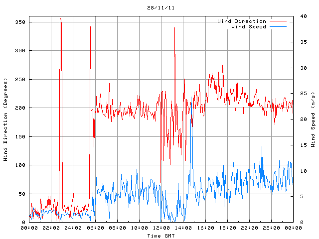- Max Wind Speed: 24.3 ms-1 Time: 14:42:45 GMT