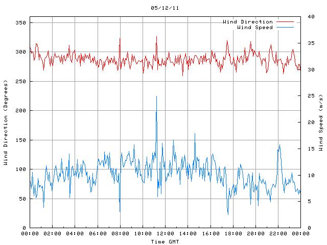 - Max Wind Speed: 25.0 ms-1 Time: 11:12:45 GMT