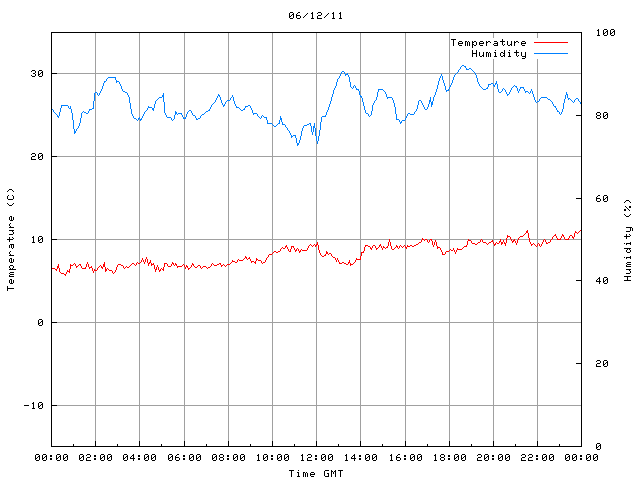- Max Temp: 11.0 °C Time: 21:32:45 GMT