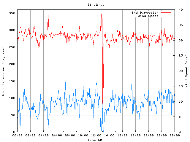 - Max Wind Speed: 17.9 ms-1 Time: 7:17:45 GMT