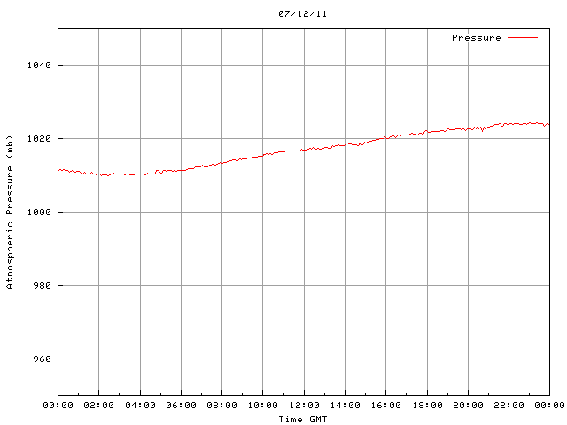 The PML meteorological station, situated on the south-west corner of the building roof, consists of a Hygroclip S3 temperature and humidity sensor housed in a radiation shield, a Mierij Meteo solid state wind sensor (MMW-005), a Chelsea instruments half-hemisphere PAR sensor, a Li-Cor pyranometer (LI-200SZ) and an Omni Instruments 6" tipping bucket raingauge (RG200). The data are logged every 5 minutes using a Pace Scientific XR5 data logger. The real-time rainfall data is likely in error - the correct values will be displayed after a time lag of approximately 24 hours. The meteorological station is sheltered from winds in the north-east and underestimates winds from this quarter. To use these data please contact Dr Tim Smyth.