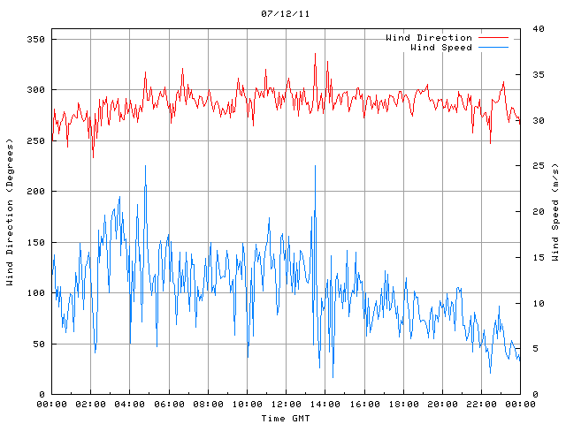 - Max Wind Speed: 25.0 ms-1 Time: 4:47:45 GMT