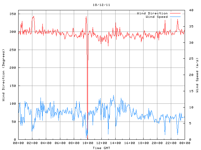 - Max Wind Speed: 13.7 ms-1 Time: 13:42:45 GMT