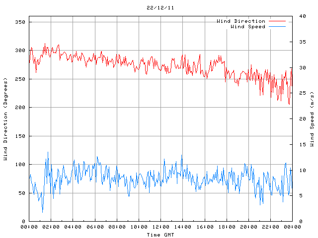 - Max Wind Speed: 13.5 ms-1 Time: 1:42:45 GMT