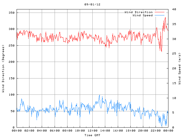 - Max Wind Speed: 11.0 ms-1 Time: 13:06:09 GMT
