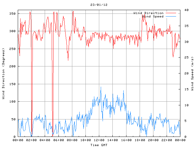 - Max Wind Speed: 15.8 ms-1 Time: 12:16:09 GMT