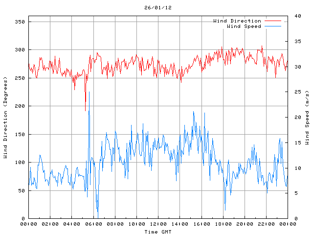 - Max Wind Speed: 25.0 ms-1 Time: 5:36:09 GMT