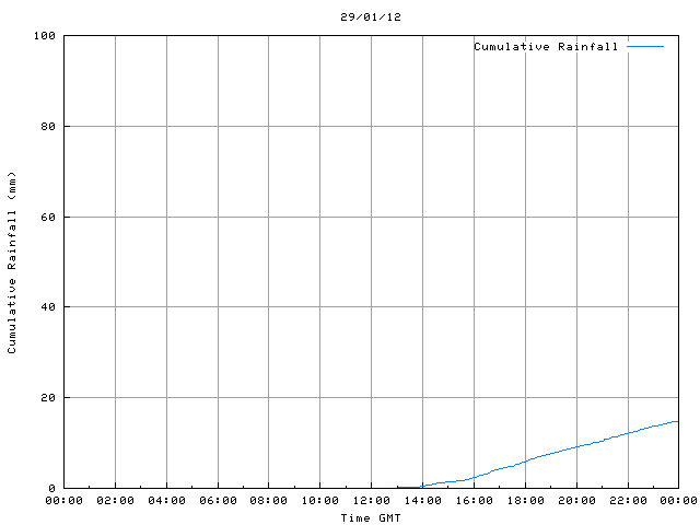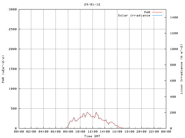 The PML meteorological station, situated on the south-west corner of the building roof, consists of a Hygroclip S3 temperature and humidity sensor housed in a radiation shield, a Mierij Meteo solid state wind sensor (MMW-005), a Chelsea instruments half-hemisphere PAR sensor, a Li-Cor pyranometer (LI-200SZ) and an Omni Instruments 6" tipping bucket raingauge (RG200). The data are logged every 5 minutes using a Pace Scientific XR5 data logger. The real-time rainfall data is likely in error - the correct values will be displayed after a time lag of approximately 24 hours. The meteorological station is sheltered from winds in the north-east and underestimates winds from this quarter. To use these data please contact Dr Tim Smyth.