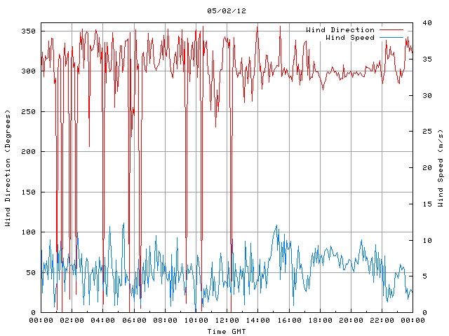 - Max Wind Speed: 12.4 ms-1 Time: 5:21:09 GMT