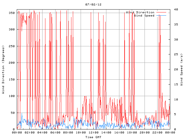 - Max Wind Speed: 5.4 ms-1 Time: 0:46:09 GMT