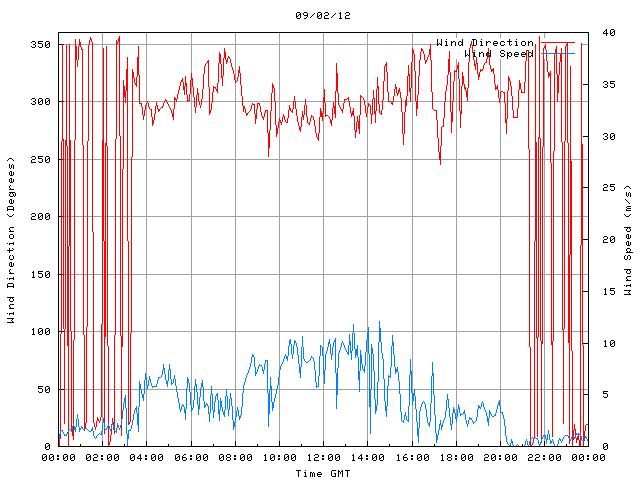 - Max Wind Speed: 12.1 ms-1 Time: 14:31:09 GMT