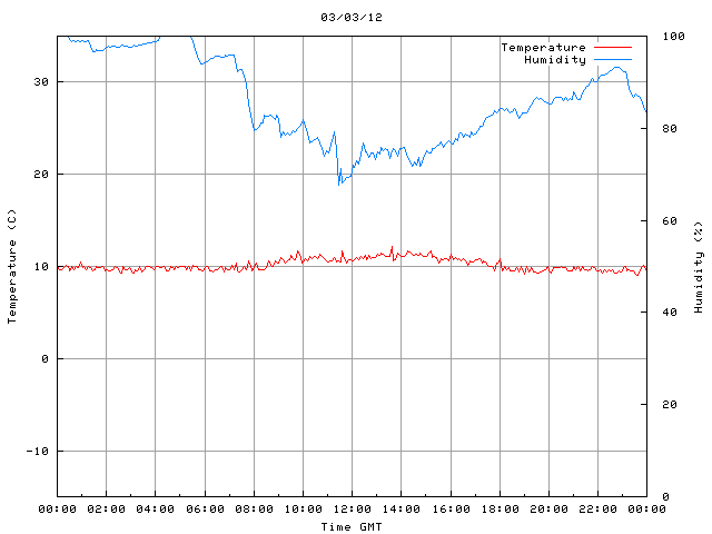 - Max Temp: 12.1 °C Time: 13:36:09 GMT