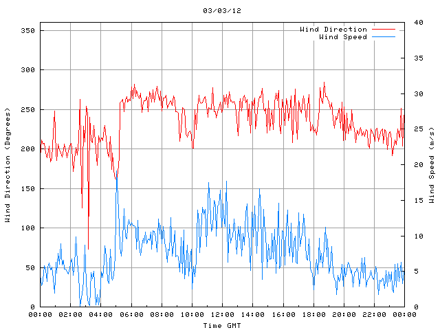 - Max Wind Speed: 19.1 ms-1 Time: 5:01:09 GMT