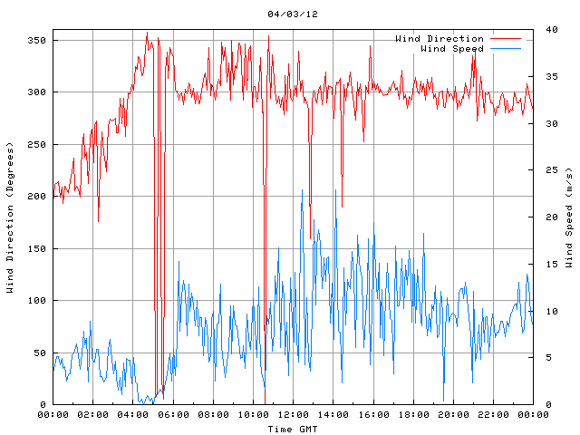- Max Wind Speed: 22.9 ms-1 Time: 12:26:09 GMT