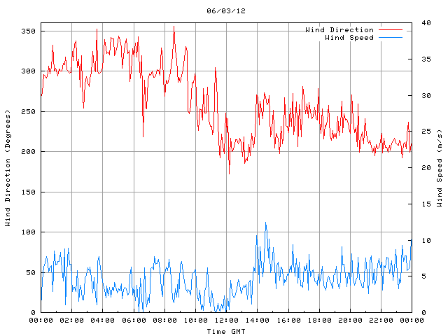 - Max Wind Speed: 12.5 ms-1 Time: 14:31:09 GMT