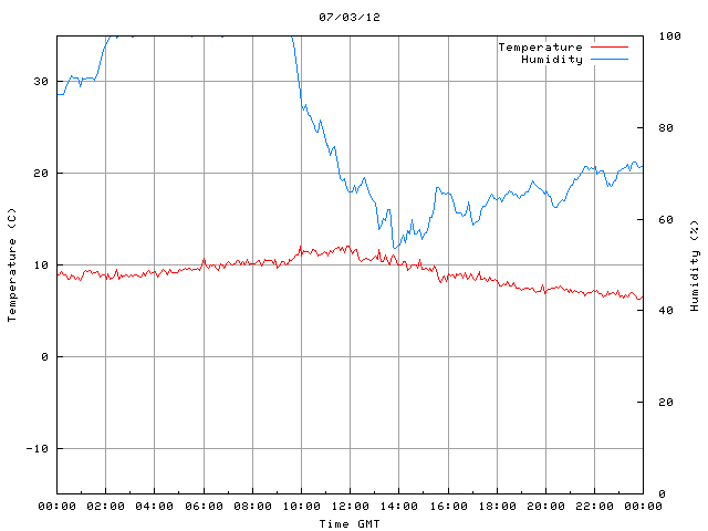 - Max Temp: 12.0 °C Time: 9:56:09 GMT