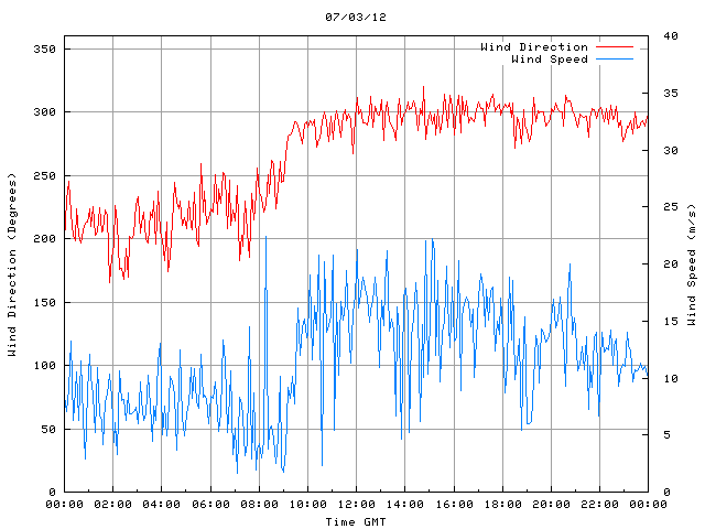 - Max Wind Speed: 22.4 ms-1 Time: 8:16:09 GMT