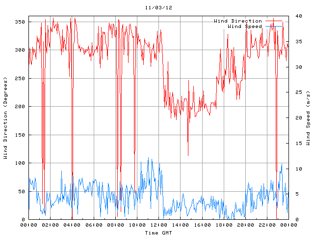 - Max Wind Speed: 12.2 ms-1 Time: 11:01:09 GMT