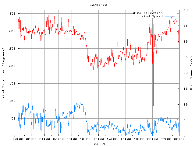 - Max Wind Speed: 10.6 ms-1 Time: 8:46:09 GMT