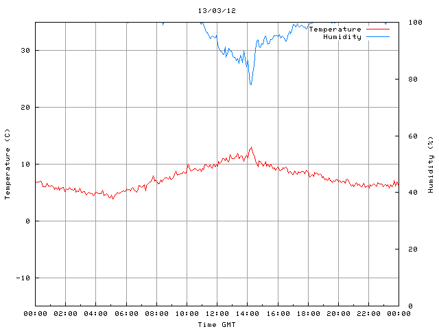 - Max Temp: 13.0 °C Time: 14:16:09 GMT