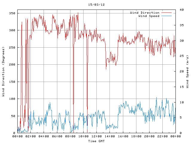 - Max Wind Speed: 11.6 ms-1 Time: 21:06:09 GMT