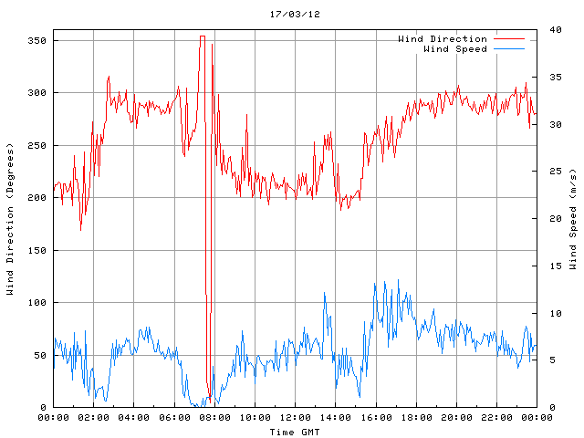 - Max Wind Speed: 13.5 ms-1 Time: 17:06:09 GMT