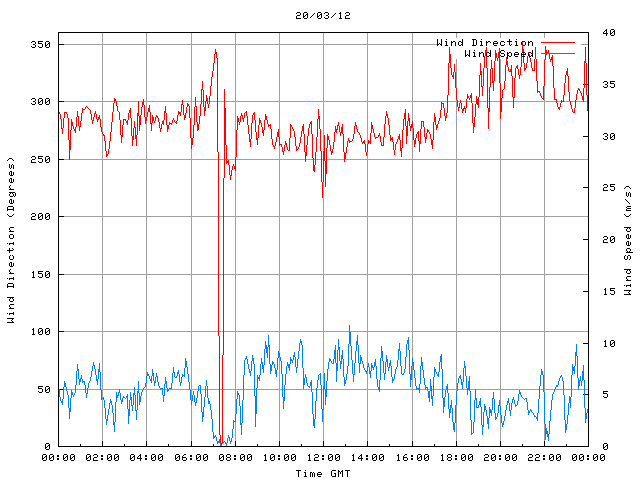 - Max Wind Speed: 11.7 ms-1 Time: 13:11:09 GMT