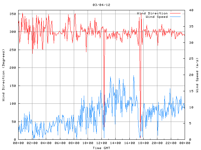 - Max Wind Speed: 19.8 ms-1 Time: 16:36:09 GMT