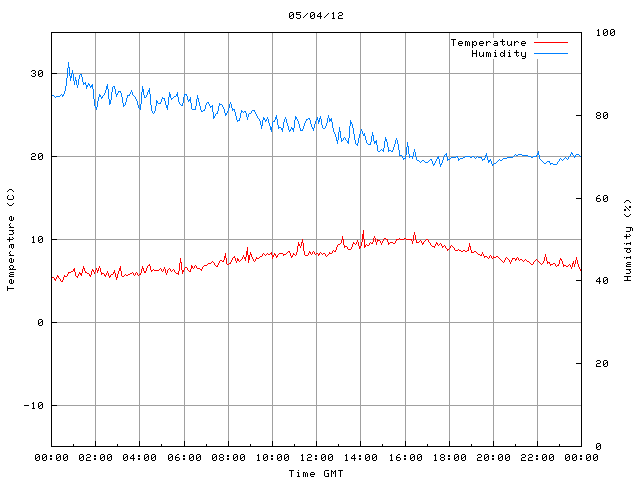 - Max Temp: 11.0 °C Time: 14:06:09 GMT