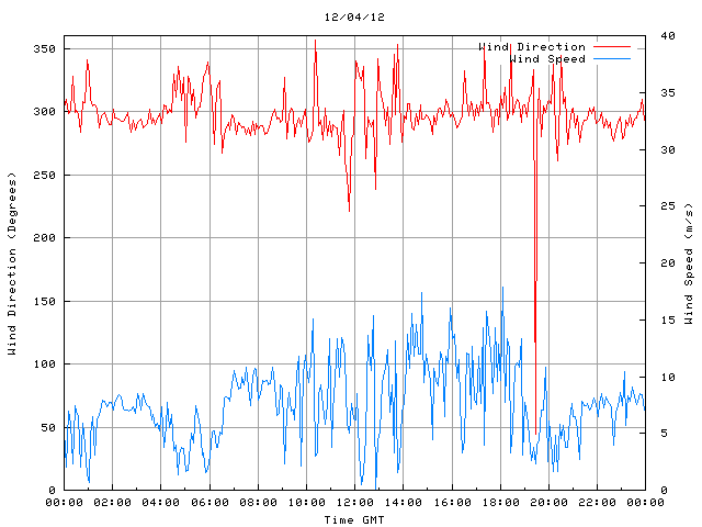 - Max Wind Speed: 17.9 ms-1 Time: 18:06:09 GMT