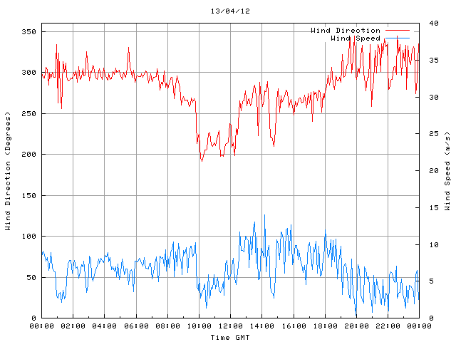 - Max Wind Speed: 14.0 ms-1 Time: 14:11:09 GMT
