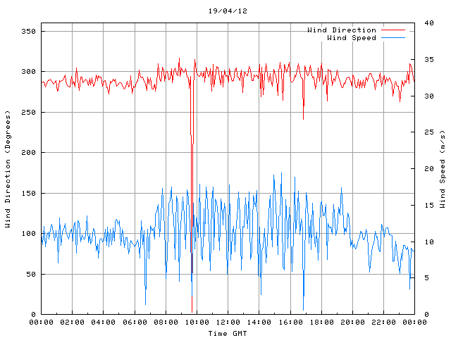 - Max Wind Speed: 19.4 ms-1 Time: 15:26:09 GMT